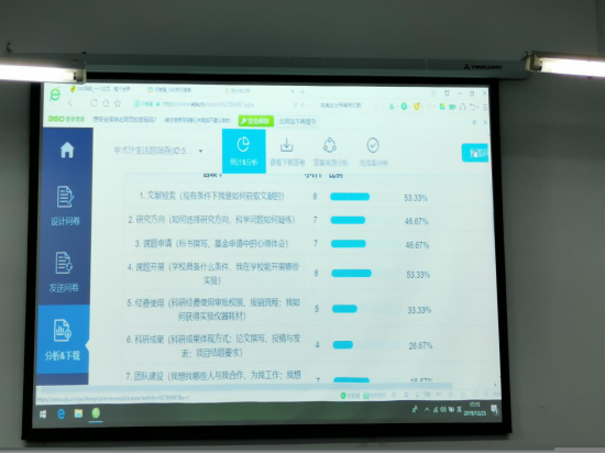 本期学术沙龙开始前,在药学系范围内进行了学术沙龙热门话题问卷调查。讨论交流环节与会者就普遍关心的文献检索、专利申请、课题开展、经费使用等科研活动开展过程中的具体问题进行集中讨论和交流。药学系主任宋丽华教授结合学校情况,就大家关心的科研条件、经费使用、设备采购等问题进行了耐心细致地解答。
